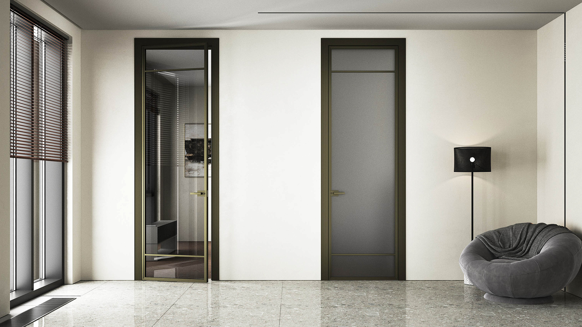 Распашная дверь с минимальным алюминиевым профилем и скрытыми петлями