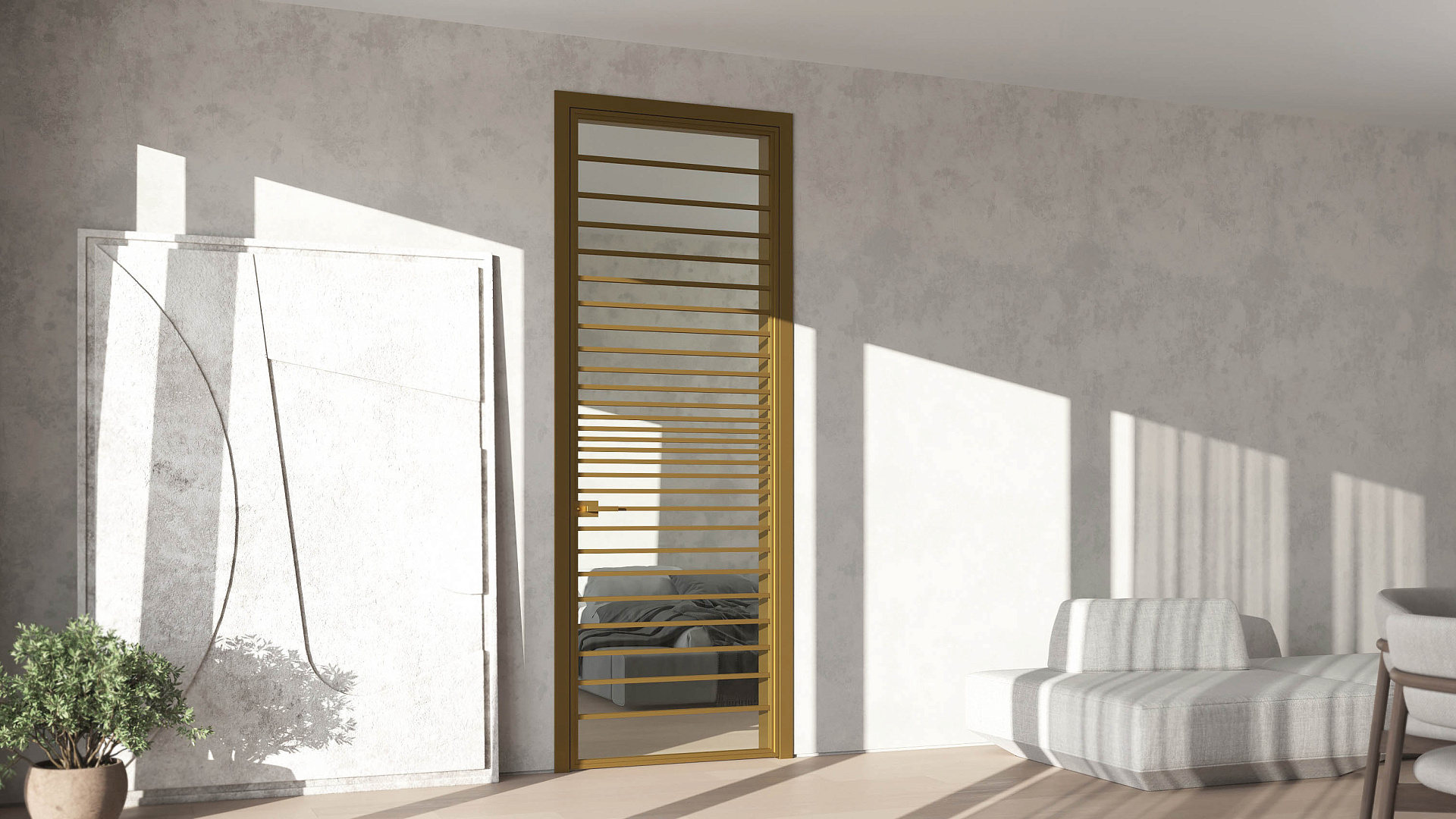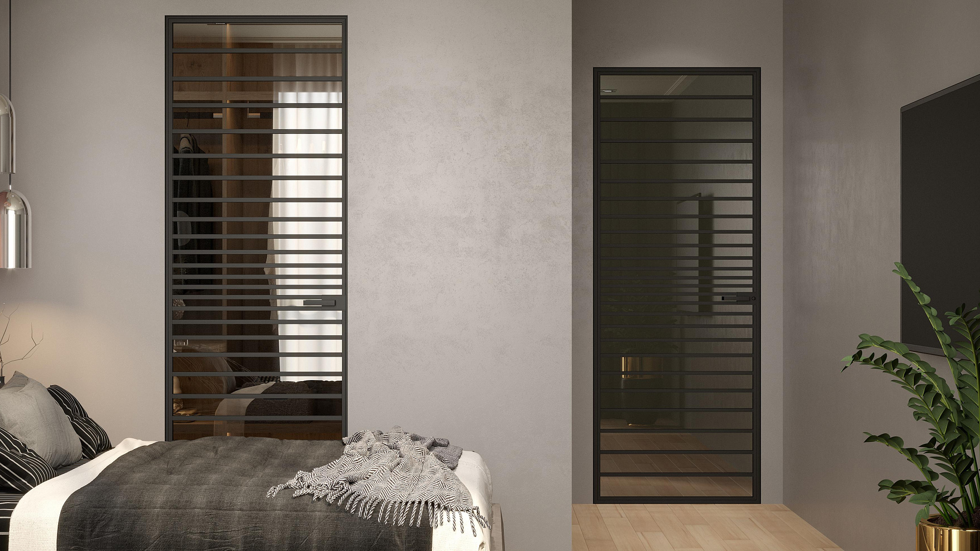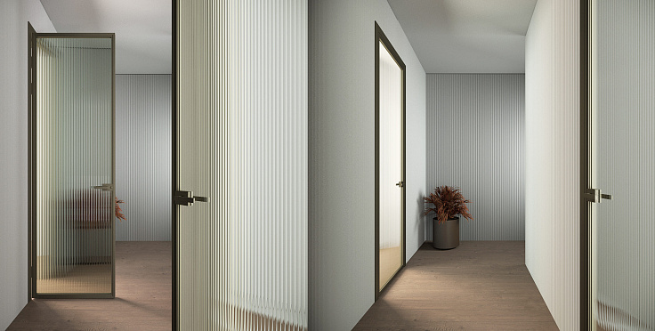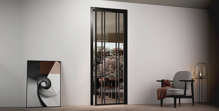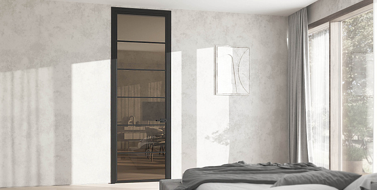 Распашная дверь с минимальным алюминиевым профилем и скрытыми петлями
