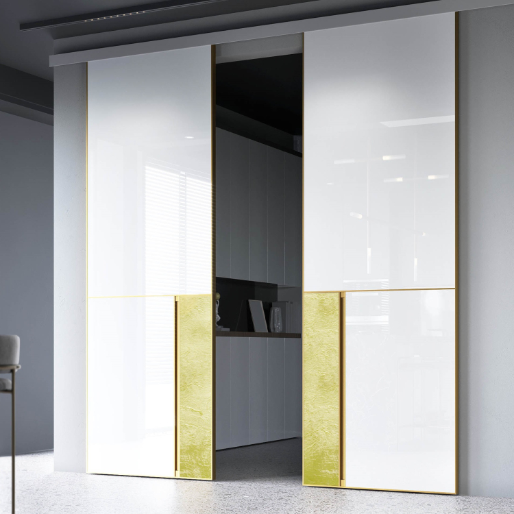 Толщина полотна 45мм. Видимая часть профиля и декоративная раскладка на полотне 8 мм