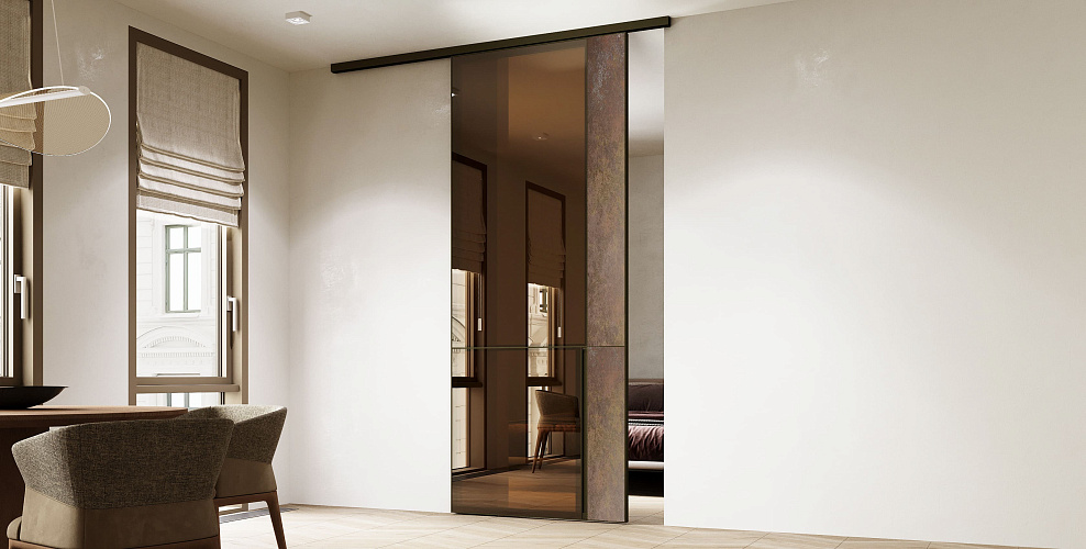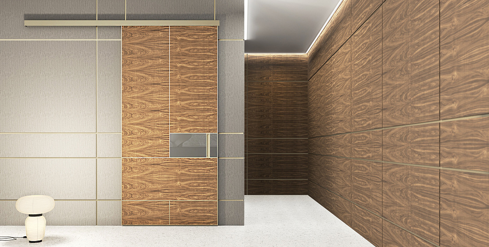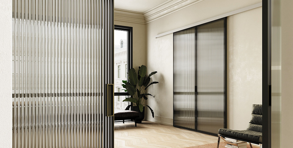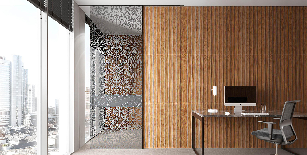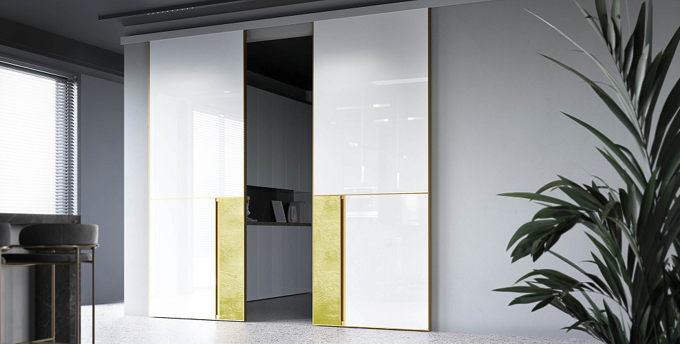 Толщина полотна 45мм. Видимая часть профиля и декоративная раскладка на полотне 8 мм
