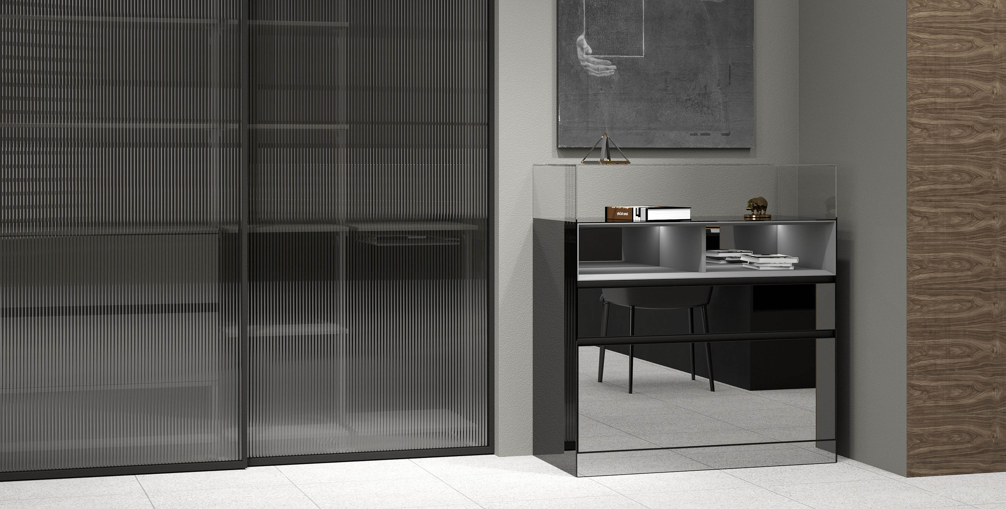 Алюминиевый профиль фасадов собственной разработки с интегрированными ручками. Итальянская фурнитура - лидер по качеству, надежности и долговечности. Мы используем самые качественные материалы и комплектующие! ЛДСП австрийской компании EGGER - это качество и не имеющий конкуренции выбор текстур и цветов.