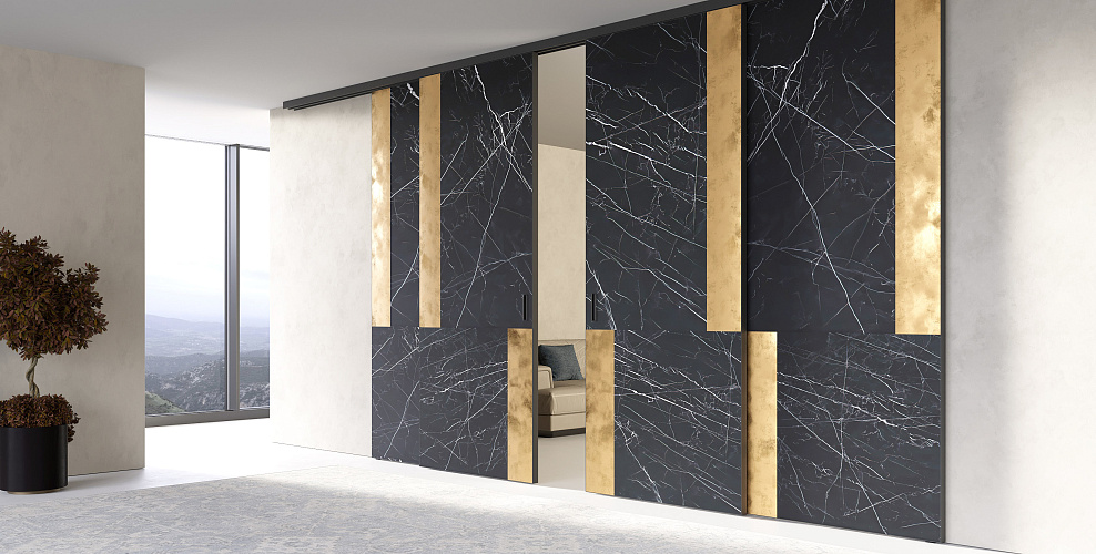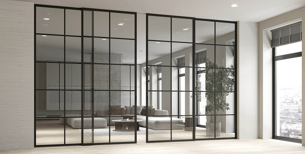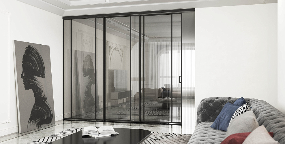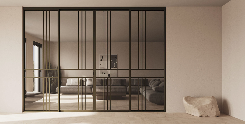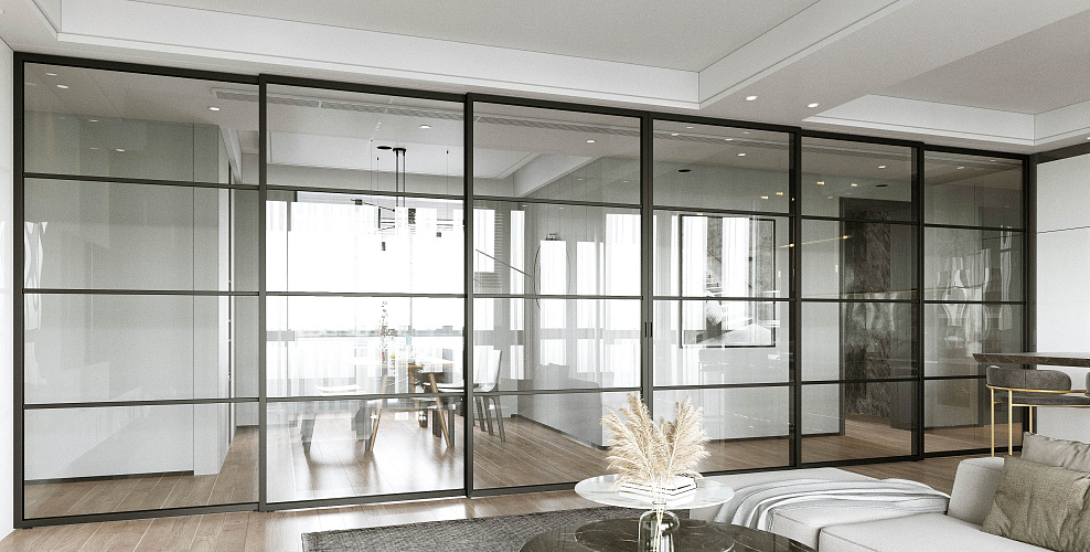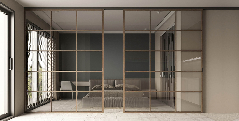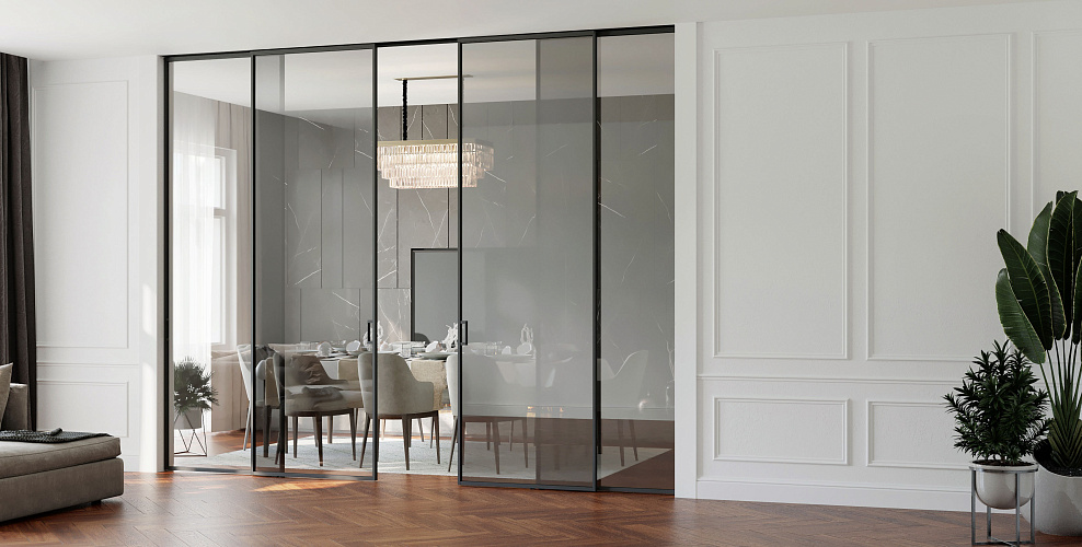 Толщина полотна 45мм. Видимая часть профиля и декоративная раскладка на полотне 8 мм