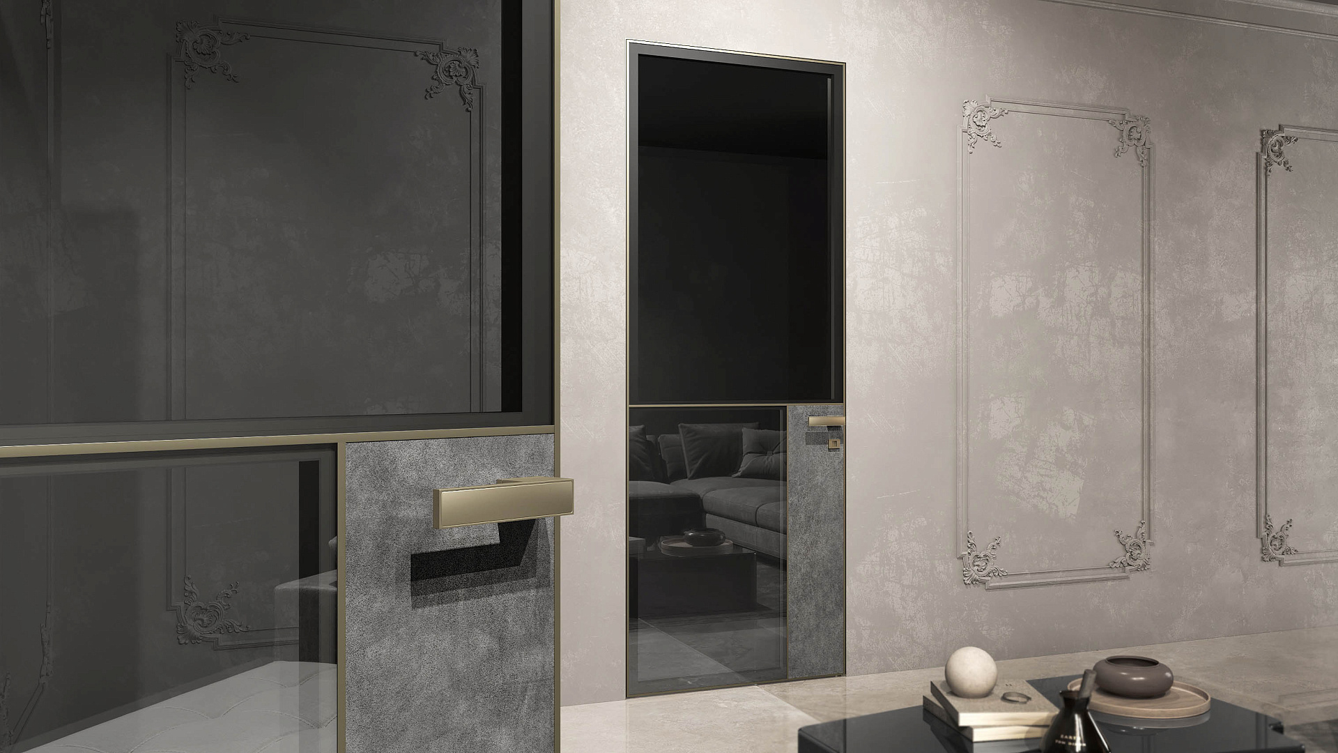 Дверное полотно с алюминиевым профилем с видимой кромкой 8мм. Толщина полотна 45 мм Возможность использования множества материалов для отделки, таких как : стекло 4мм, зеркало 4мм, МДФ шпонированный, МДФ крашенный, Керамогранит, HPL композит, а также ваш материал(по предварительному согласованию возможности его установки). Используются петли скрытой установки OTLAV IN300 и усиленные OTLAV IN303 (Италия). Универсальный замок FORME (Италия), совместимый практически со всеми универсальными нажимными ручками разных производителей (FORME, TUPAI, HAFELE и др.).