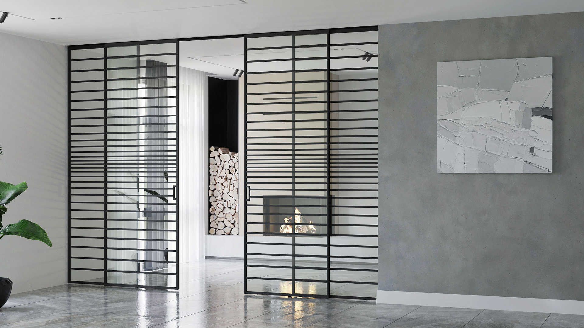 Раздвижная перегородка с тонким алюминиевым профилем 18мм