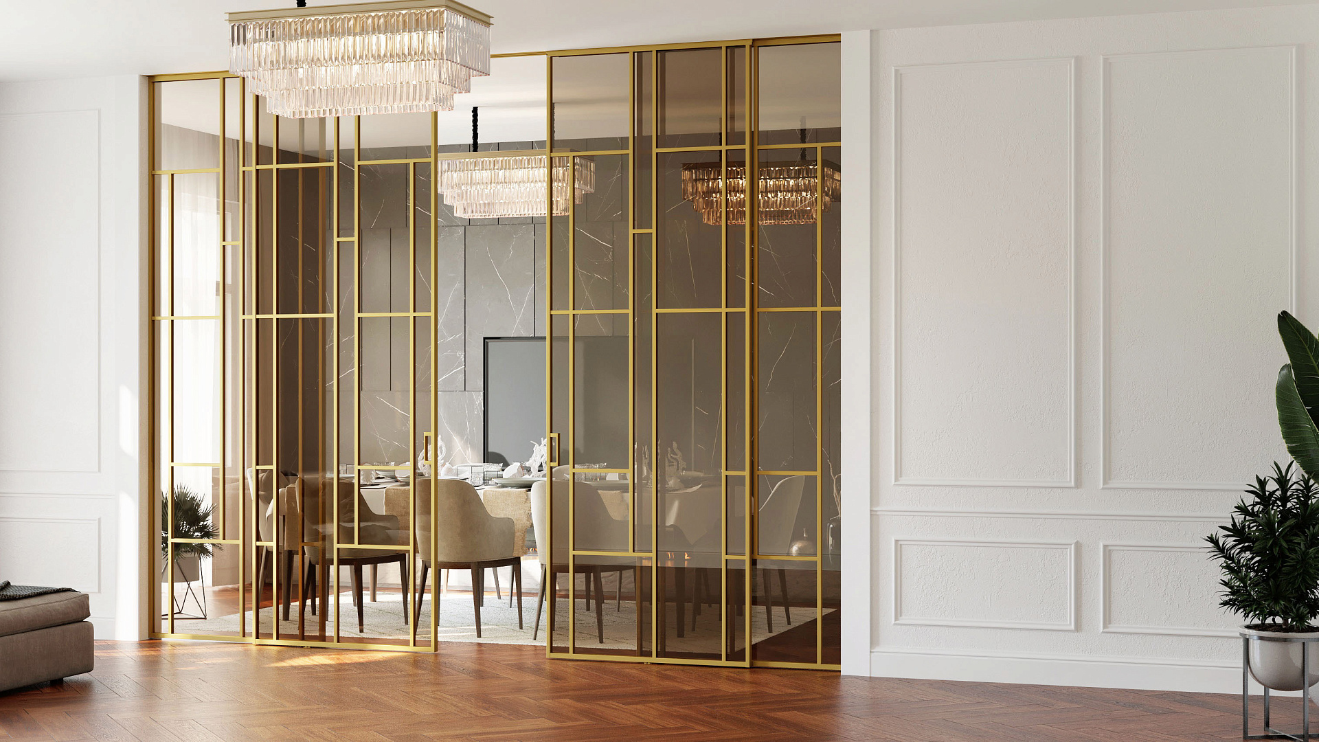 Раздвижная перегородка с тонким алюминиевым профилем 18мм