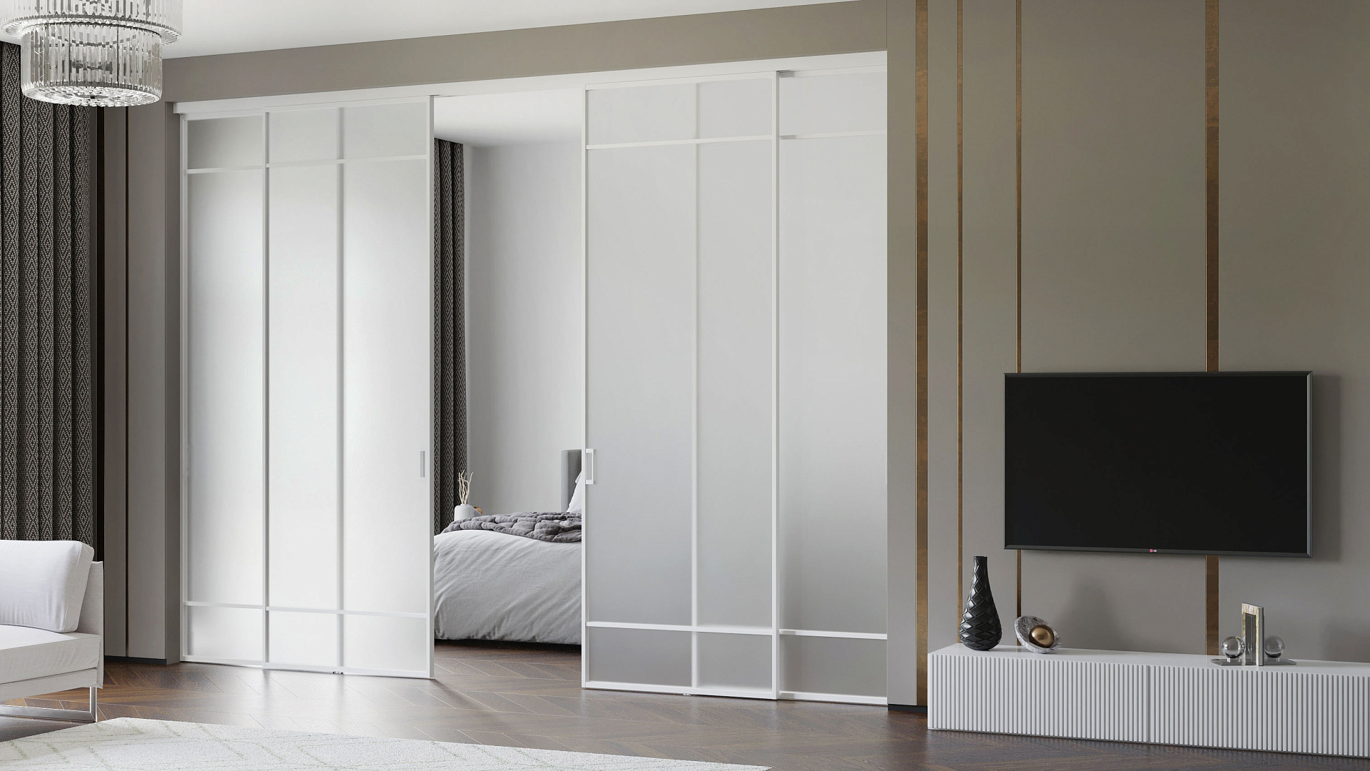 Раздвижная перегородка с тонким алюминиевым профилем 18мм