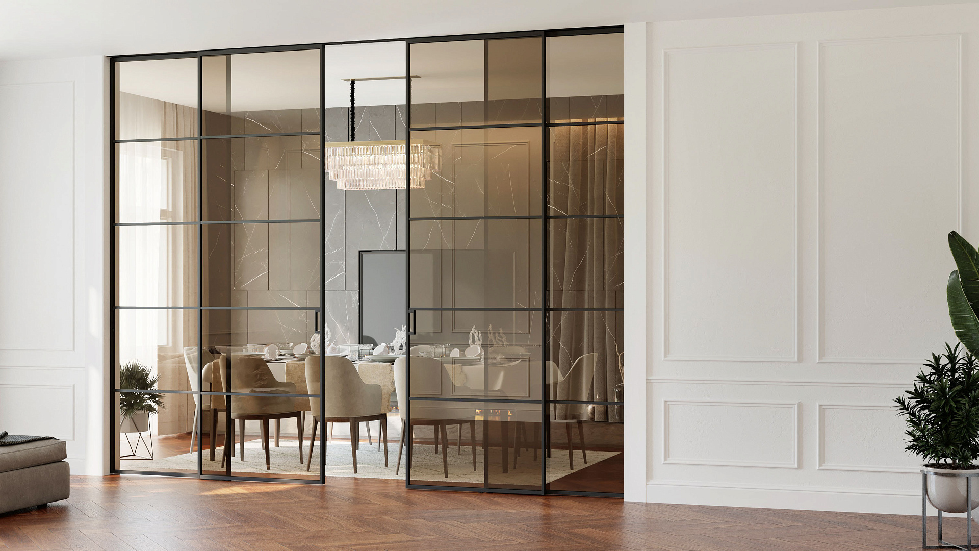 Раздвижная перегородка с тонким алюминиевым профилем 18мм